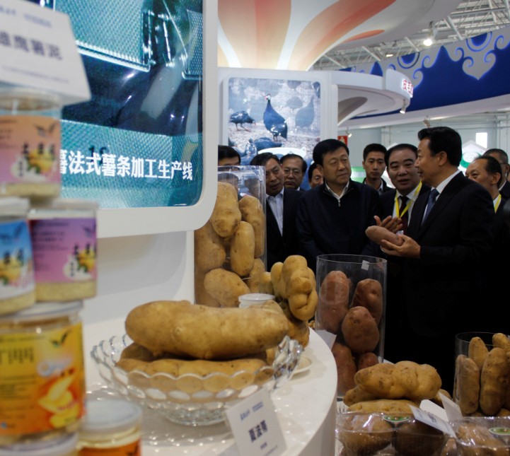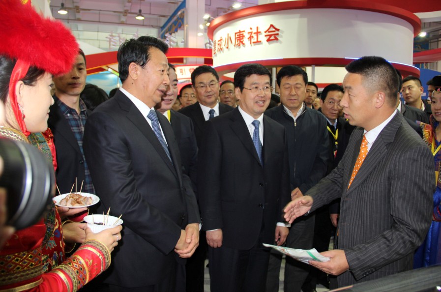 博覽會(huì)開(kāi)幕式于20131011日上午9點(diǎn)舉行,自治區(qū)農(nóng)牧業(yè)廳郭健廳長(zhǎng)主持,國(guó)家部委領(lǐng)導(dǎo)、自治區(qū)領(lǐng)導(dǎo)、有關(guān)協(xié)會(huì)領(lǐng)導(dǎo)、各省市區(qū)代表團(tuán)團(tuán)長(zhǎng)、自治區(qū)有關(guān)部門(mén)及各盟市的主要領(lǐng)導(dǎo)和參展企業(yè)代表參加開(kāi)幕式。開(kāi)幕儀式前,各位領(lǐng)導(dǎo)一行參觀了位于內(nèi)蒙古國(guó)際會(huì)展中心一樓的展覽館,展廳主要展示各盟市企業(yè)基本情況及企業(yè)的各類產(chǎn)品。隨后,各位領(lǐng)導(dǎo)及企業(yè)代表在三樓主會(huì)場(chǎng)參加開(kāi)幕儀式。開(kāi)幕儀式由郭健廳長(zhǎng)主持,自治區(qū)人民政府副主席王玉明和國(guó)家農(nóng)業(yè)部副部長(zhǎng)于康正先后做了開(kāi)幕式致辭。王主席指出我區(qū)發(fā)展綠色農(nóng)畜產(chǎn)品生產(chǎn)加工輸出基地具有得天獨(dú)厚的優(yōu)勢(shì)條件,我區(qū)發(fā)展農(nóng)牧業(yè)產(chǎn)業(yè)勢(shì)頭良好,并提出對(duì)各參會(huì)企業(yè)的希望。于部長(zhǎng)在致辭中對(duì)本屆博覽會(huì)的召開(kāi)表示了熱烈祝賀,內(nèi)蒙古是全國(guó)發(fā)展農(nóng)畜產(chǎn)品生產(chǎn)加工輸出基地的重要省區(qū),對(duì)保障國(guó)家農(nóng)業(yè)發(fā)展有舉足輕重的作用。