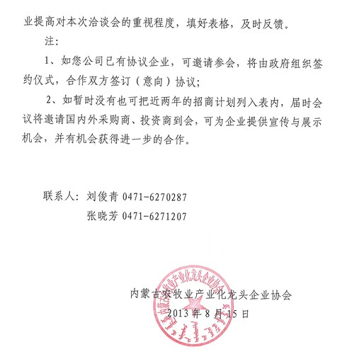 關于參加內蒙古綠色農畜產品投資貿易洽談會征集企業(yè)招商項目的通知
