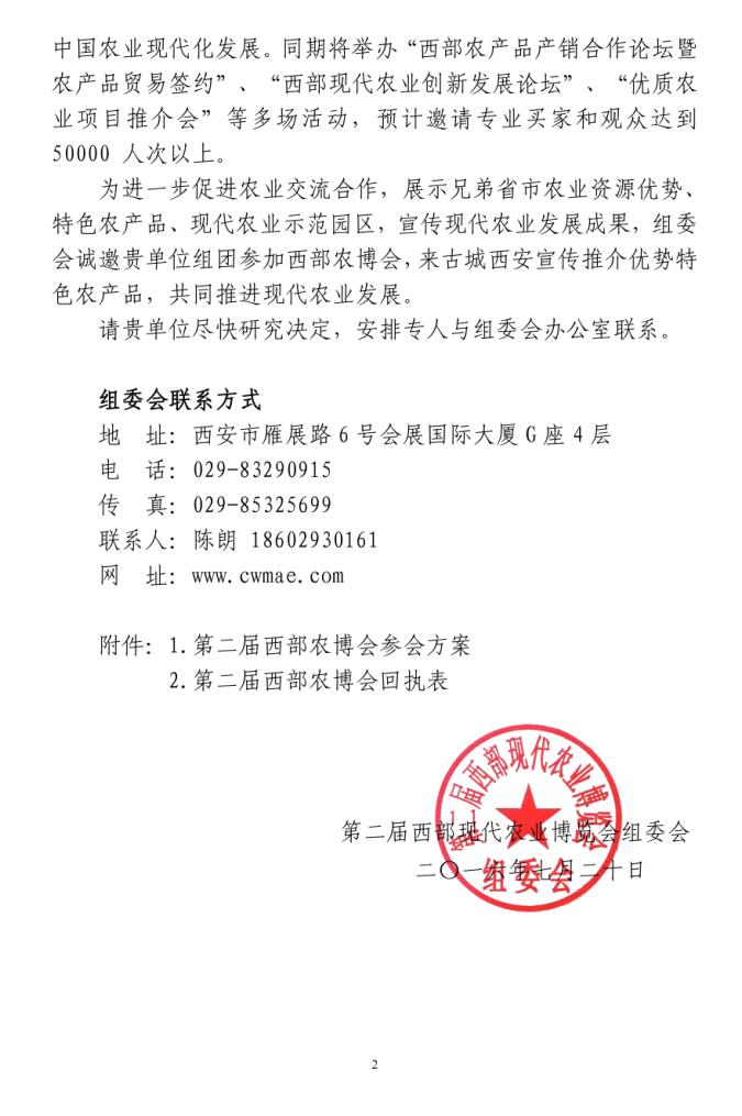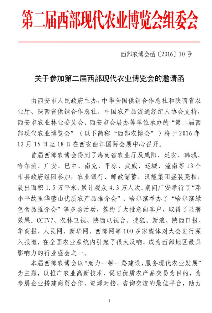 關(guān)于參加第二屆西部現(xiàn)代農(nóng)業(yè)博覽會的邀請函
