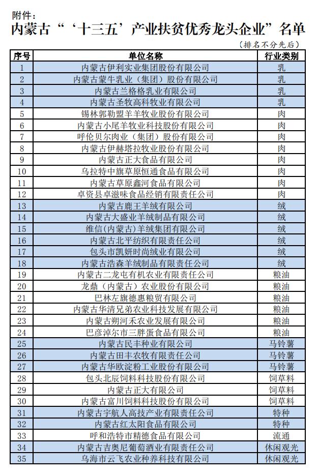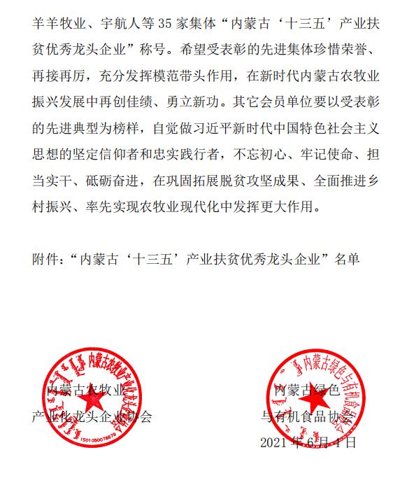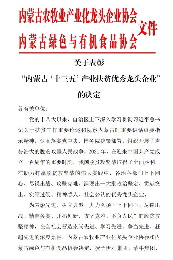 關(guān)于表彰“內(nèi)蒙古‘十三五’產(chǎn)業(yè)扶貧優(yōu)秀龍頭企業(yè)”的決定