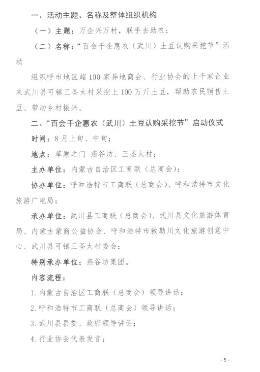 關于舉辦“百會千企惠農(nóng)(武川)土豆認購采挖節(jié)”活動的通知