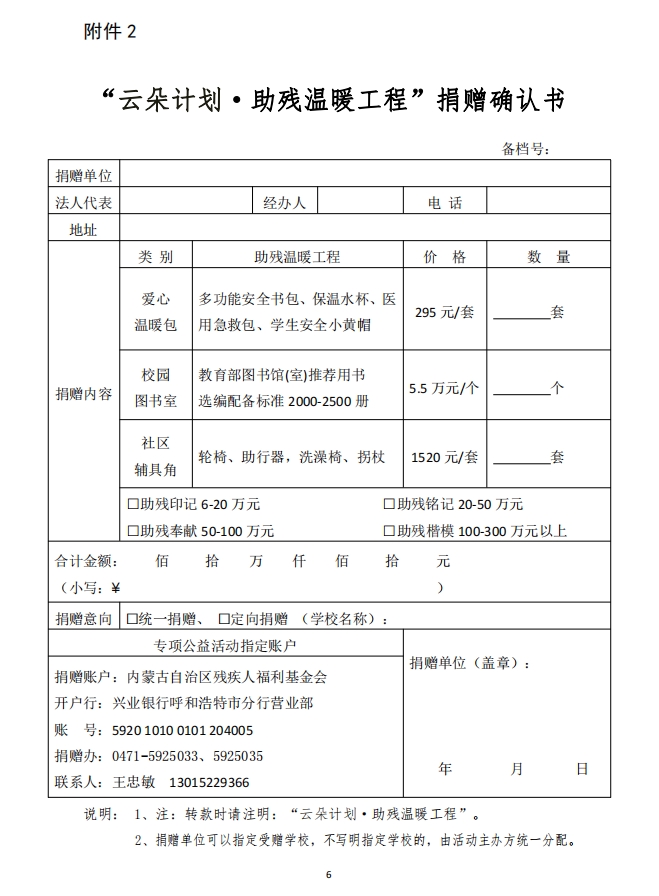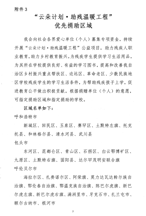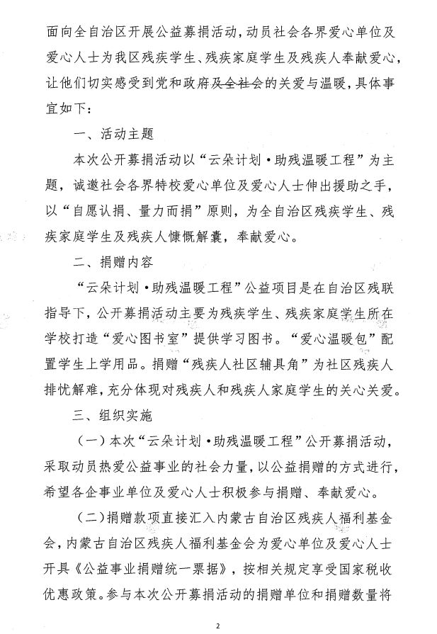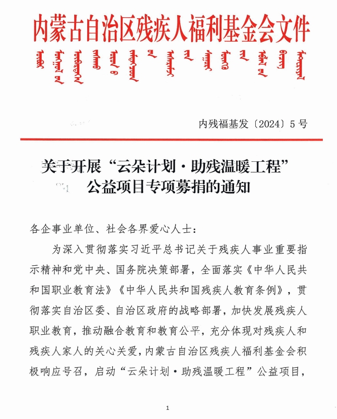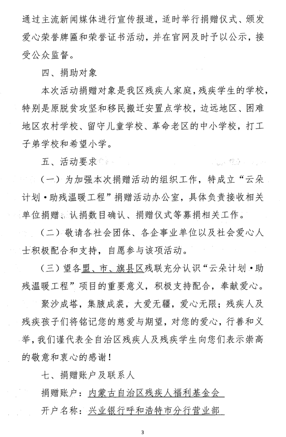 關(guān)于開展“云朵計(jì)劃·助殘溫暖工程’公益項(xiàng)目專項(xiàng)募捐的通知