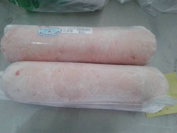 用排酸后的羔羊肉卷成圓柱狀,稱(chēng)之為羔羊肉卷。做成長(zhǎng)方形